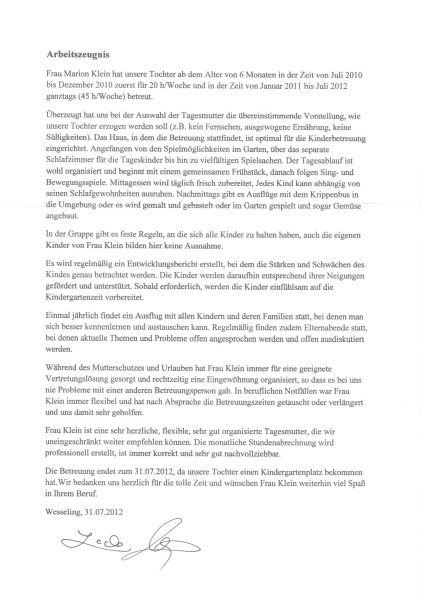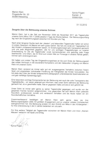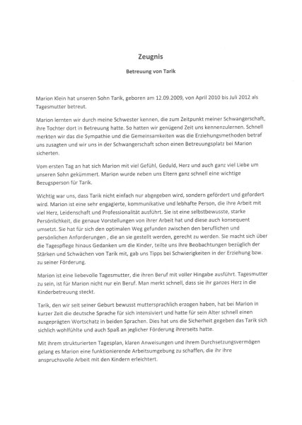 Auch Tarik Duhera wurde nach 2 Jahren und 3 Monaten Betreuung bei mir reif für den Kindergarten und verließ uns zum 31.07.2012. Hier die Referenz der Eltern: